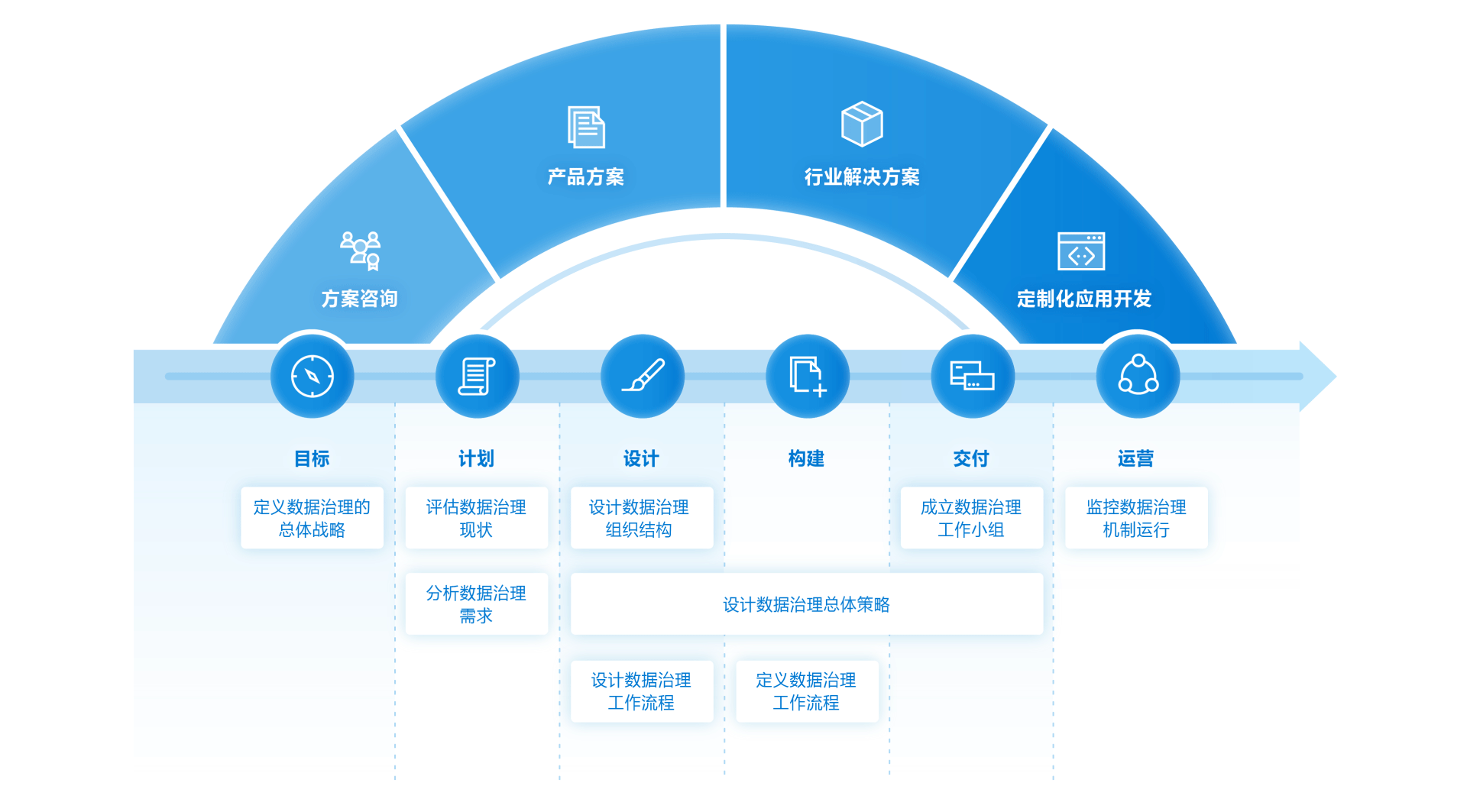 1. 定义业务术语表、制定元数据标准、制定主数据标准、制定数据治理制度及评估指标。