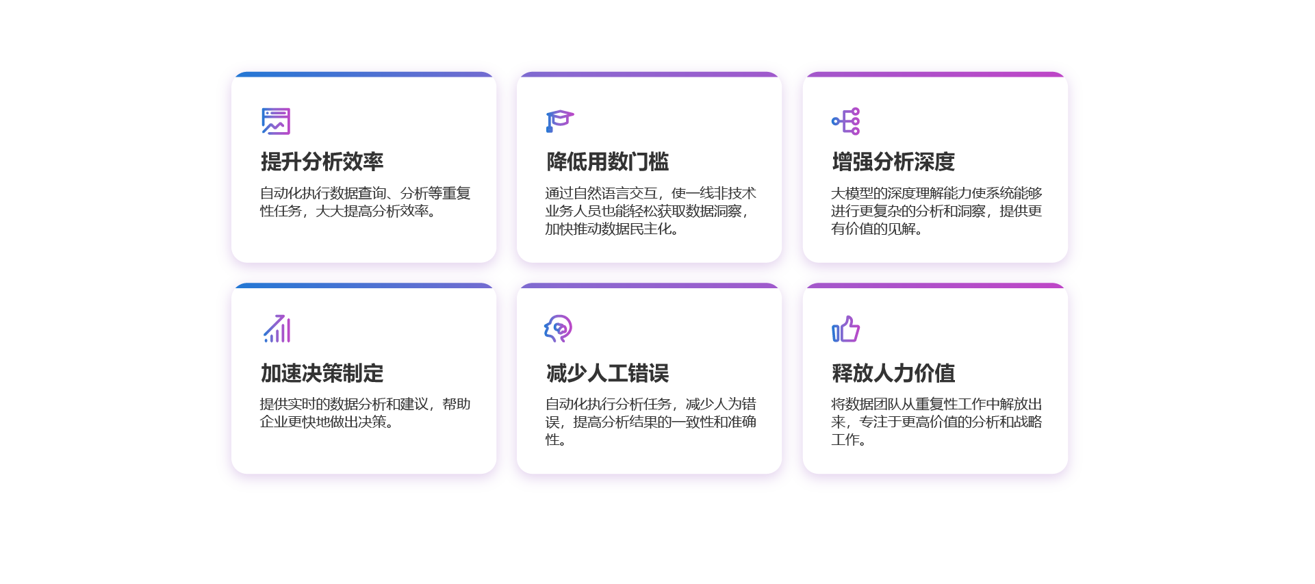 通过自然语言深度理解打破了数据使用的技能壁垒,借助多维度智能分析提升了决策效率,依托全链路治理保障了数据价值的安全释放。